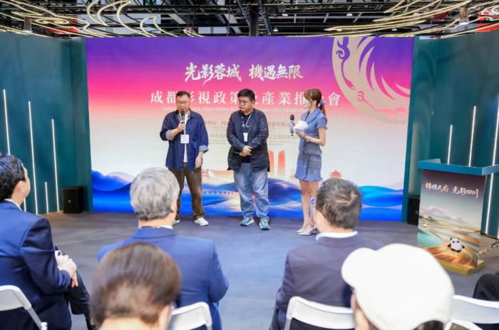 推介會上,主辦方通過政策推介短片,系統(tǒng)展示了成都影視產業(yè)的政策優(yōu)勢、產業(yè)布局和服務能力。成都將影視動漫納入數字文創(chuàng)產業(yè)高質量發(fā)展的六大核心賽道,出臺《促進影視產業(yè)發(fā)展的若干政策》,形成省、市、區(qū)三級政策聯動體系,覆蓋劇本孵化、精品創(chuàng)作、后期制作、宣傳發(fā)行、IP轉化、人才培養(yǎng)等全鏈條,為影視項目提供全方位保障。