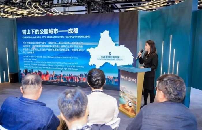 在產業(yè)平臺與企業(yè)推介環(huán)節(jié),成都影視城管委會副主任吳詩涵、成都成視音樂制作有限公司總經理李亞婷分別代表成都影視城和成都廣播影視集團,向全球影視同仁展示成都影視產業(yè)的核心載體與發(fā)展活力。